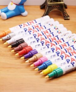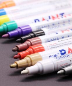 Puhdista renkaat saippuavedellä ja hankaa rengasta maalattavalla alueella. Ravista kynää korkki päällä 30 sekuntia. Pohjusta kynää painamalla sitä alas useita kertoja, kunnes maali alkaa valua. Aloita kirjoittaminen.