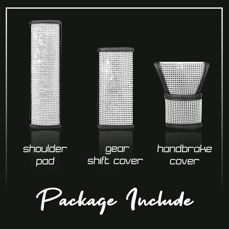 1 x Crystal-olkatyyny , kristallivaihteiston suojus , kristallikäsijarrun suojus , ohjauspyörän suojus Crystal tai