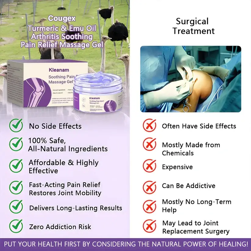 Palaa takaisin kivuttomaan liikkumiseen Kleanam™ Kurkuma & Emu Oil Niveltulehdus Pain Relief Hierontageeli!
