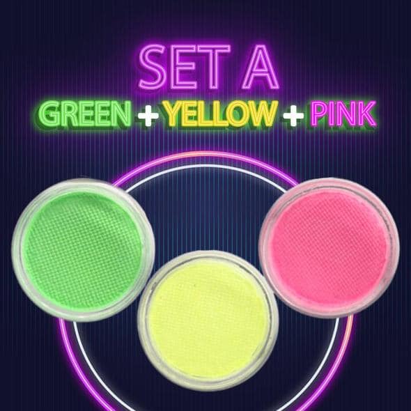 - Set A (keltainen + vaaleanpunainen + vihreä); Aseta B (sininen + violetti + vihreä)