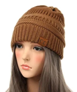 - Brändi- CC Brand Beanie (pieni, ruskea, nahkainen merkki, johon on kiinnitetty CC-merkki)